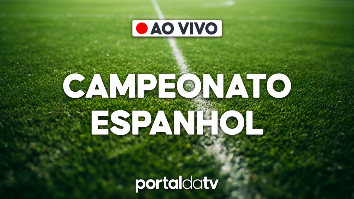Transmissão ao vivo do Campeonato Espanhol com logo do Portal da TV sobre gramado de futebol