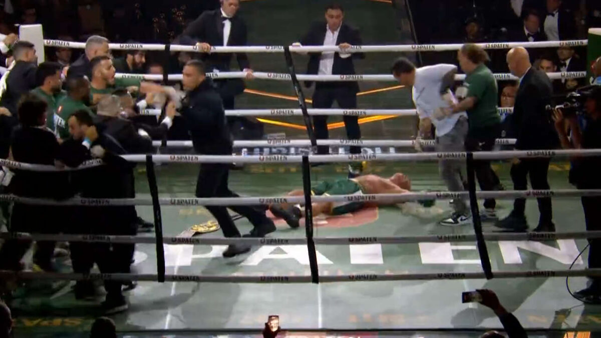 - Após o anúncio, equipes invadiram o ringue e geraram confusão