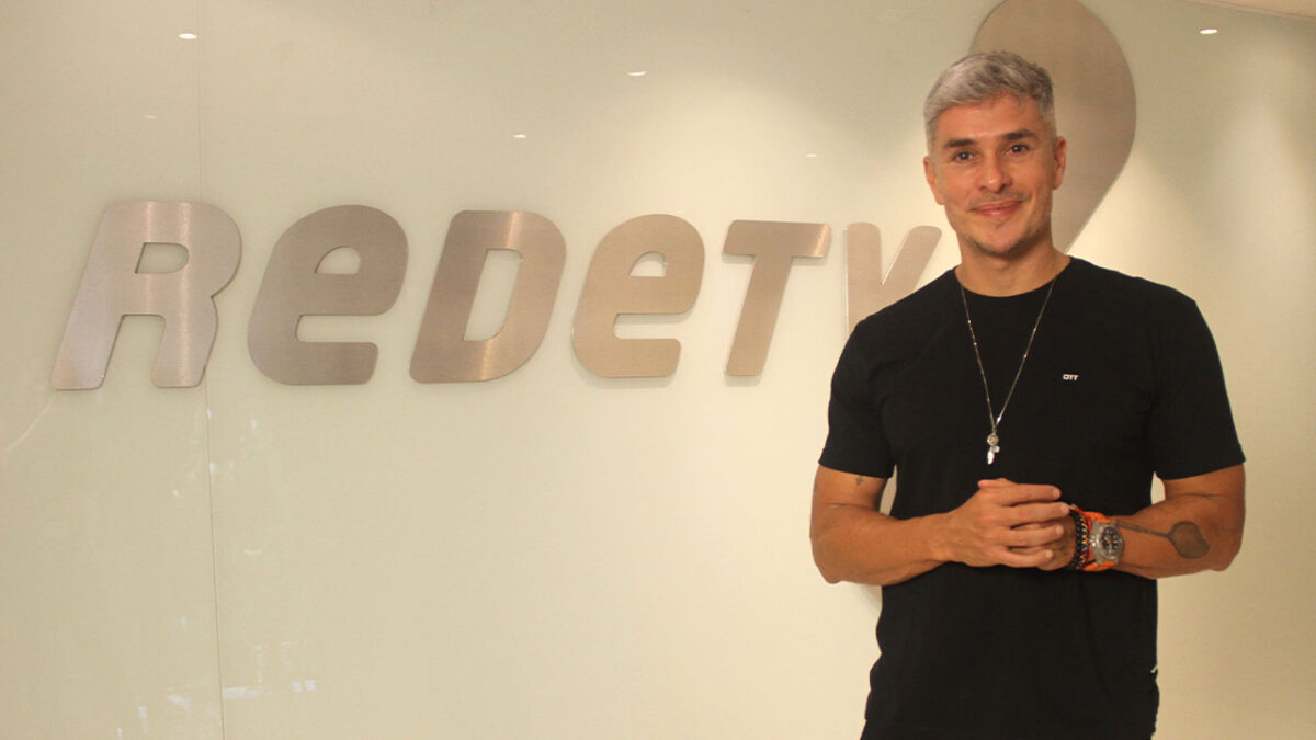 Ivan Moré em foto com o logo da RedeTV! ao fundo
