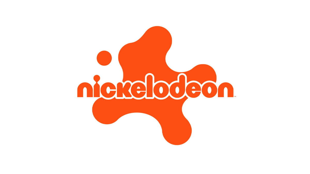 Logotipo da Nickelodeon em laranja com formato de mancha ao fundo e letras arredondadas