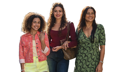 Em Três Graças, Gerluce Maria das Graças (Sophie Charlotte) enfrenta os desafios de criar a filha sozinha, com o apoio da mãe, Lígia (Dira Paes). Morando em uma favela fictícia de São Paulo, ela faz parte de uma família marcada por maternidades precoces.