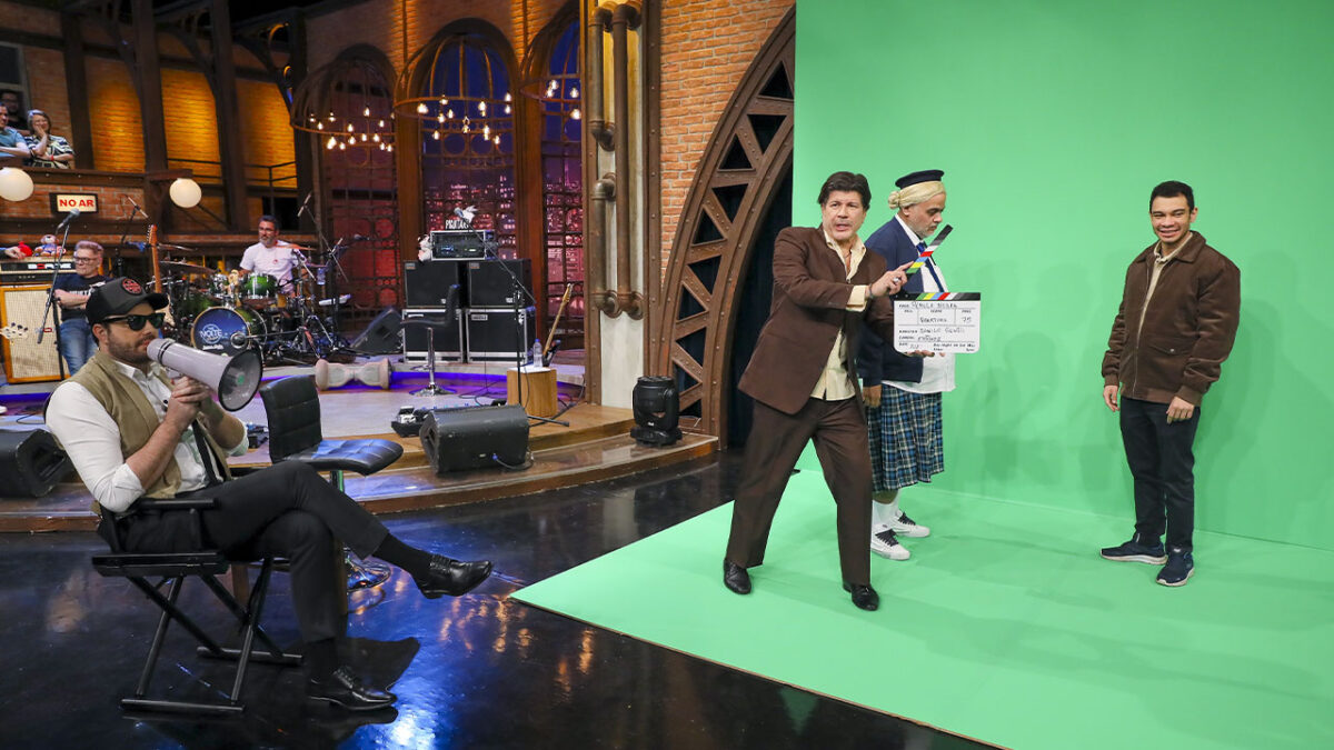 Paulo Ricardo regrava abertura da novela Pérola Negra durante participação no The Noite com Danilo Gentili