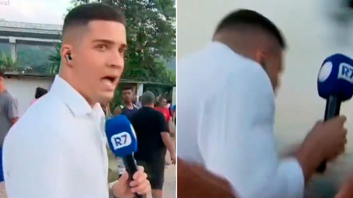 Assista ao vídeo do momento em que o jornalista da Record quase é atingido por bomba.