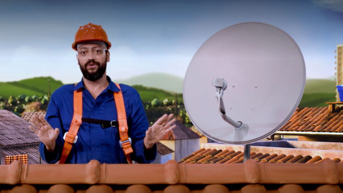 O ator Fernando Caruso em campanha da TV Globo para promover transmissão digital na parabólica de banda Ku